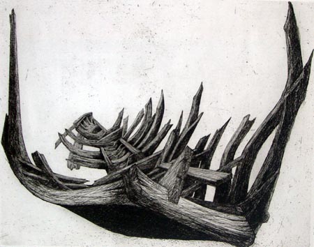 Gravure -Jacques Cortellari - "Épave" - Signée, titrée et numérotée 35/50 - daté 1968 - taille: 32 x 40 cm