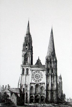Gravure - Jacques Cortellari - "Chartres" - Signée, titrée et numérotée 12/80 - daté 1969 - taille: 37 x 25 cm